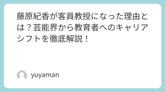 はじめに:藤原紀香が大学の客員教授に就任し話題に女優・タレントとして長年芸能界の第一線で活躍してきた藤原紀香が、大学の客員教授に就任したことが大きな話題を呼んでいます。「藤原紀香 客員教授 理由」というキーワードで検索する方が急増しており、...