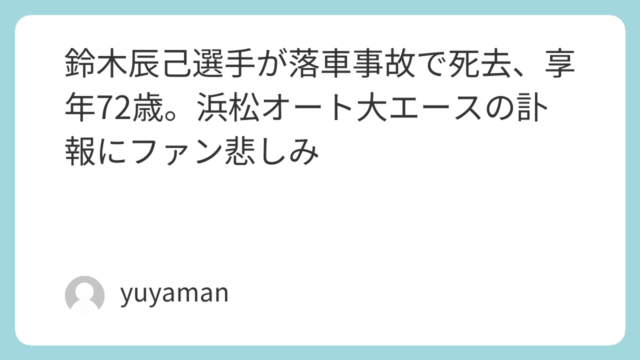 未分類 鈴木辰己選手が落車事故で死去、享年72歳。浜松オート大エースの訃報にファン悲しみ