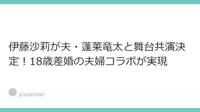 はじめに:伊藤沙莉と夫・蓬莱竜太の舞台共演が話題実力派女優・伊藤沙莉が、夫である劇作家・蓬莱竜太と結婚後初の舞台共演を果たすことが決定し、大きな話題を呼んでいます。「伊藤沙莉 舞台共演 夫」というキーワードがGoogleトレンドで急上昇する...