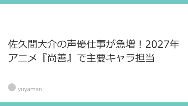 佐久間大介の声優仕事が急増!2027年アニメ『尚善』で主要キャラ担当