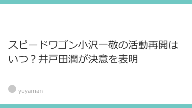 はじめに:小沢一敬の活動再開で話題沸騰!井戸田潤の決意とはお笑いコンビ・スピードワゴンの小沢一敬が活動を再開したことが、現在大きな話題を呼んでいます。「小沢一敬 活動再開 いつ」というキーワードがGoogleトレンドで急上昇し、ファンの間で...