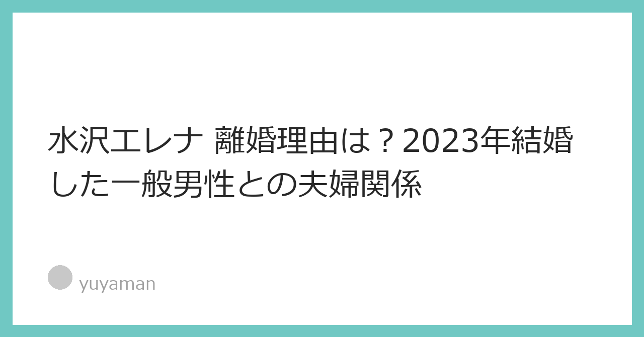 今回は水沢エレナさんの離婚理由と、2023年の結婚から離婚公表に至るまでの経緯をまとめました。改めてポイントを整理すると以下の通りです。